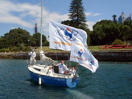 ![]() 澳洲政要和民众代表护送火炬上船 |