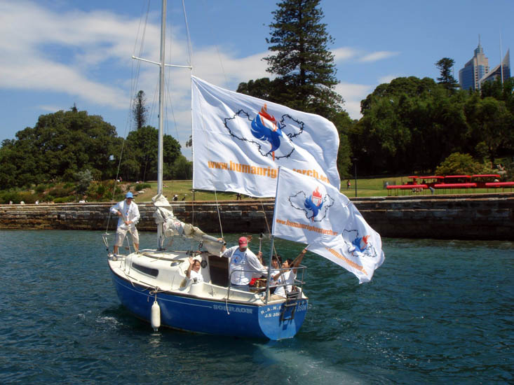 悉尼歌剧院之后,人权火炬登上一个圣火船,在悉尼港口航行一圈之后,向下一站悉尼附近的曼利海滩出发。在当天下午的四点左右,曼利海滩上当地的市长和议员也将举行欢迎仪式。在第一舰队公园的音乐会、表演和征集签活动仍然继续,并播放露天投影电影,一直到晚上九点结束。义工苏菲表示,用白绫绸布做的一个五米长、五米四宽的印有“人权圣火”标志、“支持中国人民举办一个没有中共的奥运会”的大型横幅,在公园上千名的游客在横幅上签名声援,已经签满了。当人们了解到法轮功学员因为信仰“真、善、忍”而遭到中共活体摘取器官时,人们哭了,他们说:不能让中共邪*党-亵渎象征自由与和平的奥运精神。