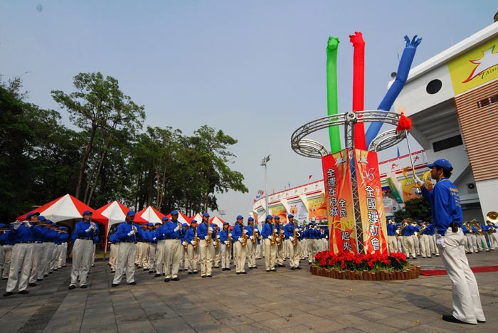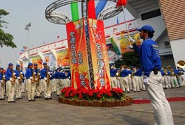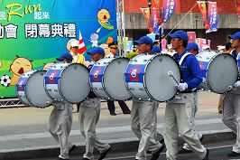 ![]() 两年一度的台湾全运会闭幕典礼,天国乐团引领闭幕游行队伍 |