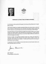 ![]() 澳洲总理霍华德发恭贺信函给所有的得奖人 |