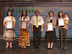 ![]() 和平大使守护家园创意征文颁奖典礼,董憓陵(左一)与其他获奖者 |