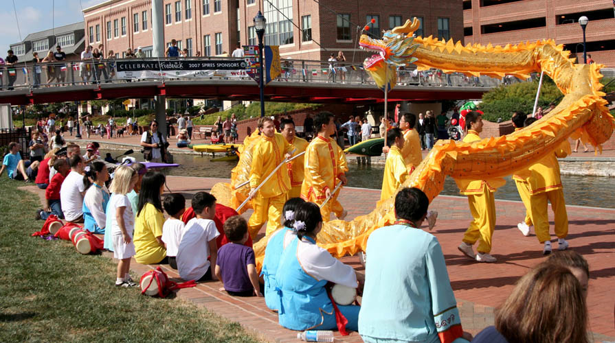 凯伦特别提到,法轮功学员组成的“舞龙队”尤其受欢迎。她说,“今天一大早我们在搭舞台的时候,就不断有人询问舞龙表演的时间,他们已成为这个节日庆典活动的一大亮点。去年法轮功学员“舞龙队”的大幅照片出现在今年节日庆典活动的所有宣传材料中,昨天弗雷德里克新闻邮报的头版也选用了法轮功学员“舞龙队”的照片。”
