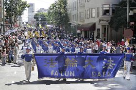 虽然法轮功在中国已经被迫害、抹黑了八年,但旧金山哥伦布大游行中法轮功团体所展现的精神面貌,让这些来自国内的同胞禁不住拿出相机留下这个在大陆暂时还不可能看到的壮观场面。
