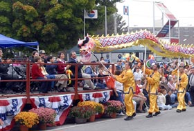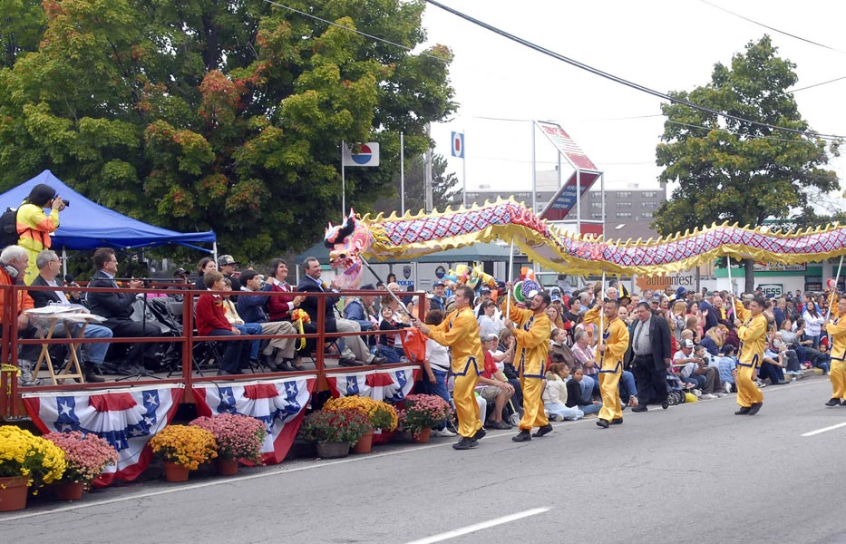法轮功学员的舞龙队和仙女舞蹈队也倍受欢迎