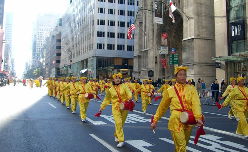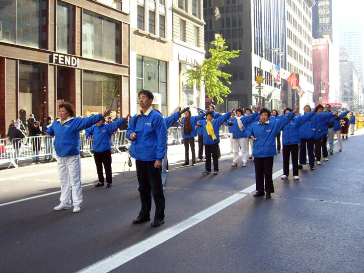 经过主席台时,主持者一遍又一遍的通过大喇叭告诉所有的人“法轮大法”,“真善忍”,“法轮大法好”,一再对法轮大法学员的参与游行表示感谢。