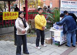 人们为中共邪*党-的暴行感到震惊,许多正义人士纷纷签名声援反迫害。当即有三位明白真相的华人退出了中共邪*党-的组织。一位西人男子签下名字支持法轮功学员反迫害,并拿了真相光盘,还说要带他的朋友过来签名。之后,他的朋友们也签名支持法轮功学员,拿了真相光盘回去看,并再三向学员道谢。