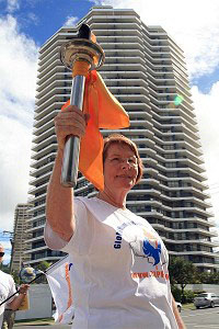 市长克拉克先生,是六十年代著名的中、长跑奥运选手,曾十七次打破世界纪录,并在一九六四年的夏季奥运会上,获得一万米长跑项目的铜牌。克拉克先生在接过圣火中表示非常荣幸的能参加人权圣火的传递,热烈欢迎人权圣火来到黄金海岸市。