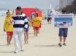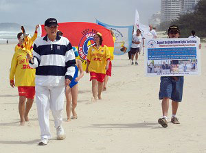 十一月十日下午,澳洲黄金海岸市以热烈的仪式迎接了人权圣火的到达。黄金海岸市市长罗恩。克拉克先生(Ron W Clarke),在爱丽公园主持了人权圣火传递仪式。活动在闻名世界的冲浪者天堂(Surfers Paradise)的海滩边举行,