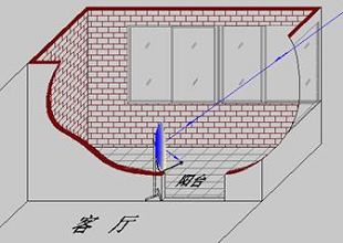 经过一段时间的摸索,我们终于成功的在朝南的阳台上接收到了新!唐!人:卫视。如图所示,天线放在客厅与阳台的门旁边,挂上窗帘,非常隐蔽,方便以后的推广。此时信号强度74%左右,信号质量白天7~13%(能够流畅收看);晚间最高能达29%。如果不受阳台空间限制,将天线向西南角适当移动,则信号更佳。如果不是封闭式阳台,估计可以用更小。