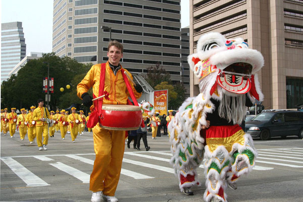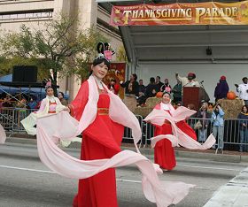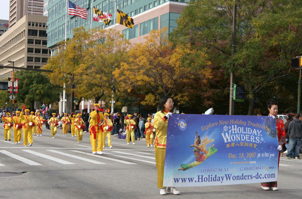 巴尔的摩市感恩节游行是该市政府组织的大型游行之一,表示节日季节的正式来临,今年有六十多个团体参加了游行,法轮功学员和新!唐!人:电视台的游行队伍是唯一一个由华人为主体的游行队伍。