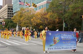 法轮功学员还给人们带来了圣诞晚会的佳音。新!唐!人:电视台将于今年十二月十八日晚在巴尔的摩市举行一场弘扬纯真、纯善、纯美的中华正统文化的高水准圣诞晚会。通过这次游行,许多人开始了解新!唐!人:的圣诞晚会。该晚会的更多信息,请看:www.HolidayWonders-dc.com。