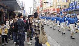 有一警察讶异的说,这么庞大的乐队好难得,这么整齐有序,真是从未见过。小学五年级的小朋友说,真是好特别的队伍,人数好多喔!还有一个母亲急忙牵着儿子抄小路,只为要追上法轮大法的天国乐团游行路线。