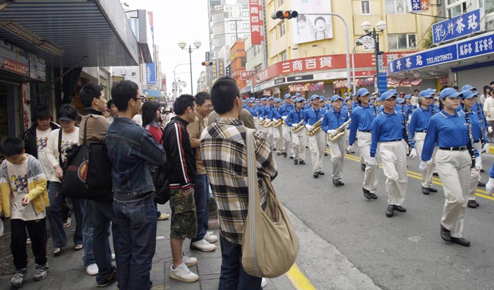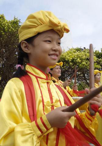 此次应县府邀请的台湾天国乐团二百五十人都是修炼「真、善、忍」的法轮功学员,是澎湖首见的大规模鼓号队伍。为了能将欢乐与祝福带给更多澎湖的民众,这支庞大的军乐团也来到澎湖一级古迹「天后宫」、著名地标「跨海大桥」、「通梁古榕」、「林投公园」等处做定点演奏。许多观光客都抓紧时机拍照,但愿能把当时的感动通通收进行囊,带回去和家人分享。