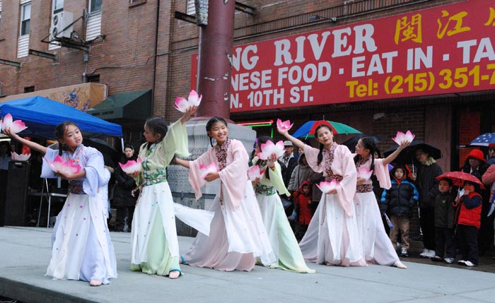 新!唐!人:龙狮团、复兴艺术团、新泽西明慧学校、柬埔寨舞蹈队等也做了精彩的表演,为费城中国城增添了少有的热闹气氛。费城主流媒体ABC、NBC电视台、费城问询报等都前来报导了这一活动。