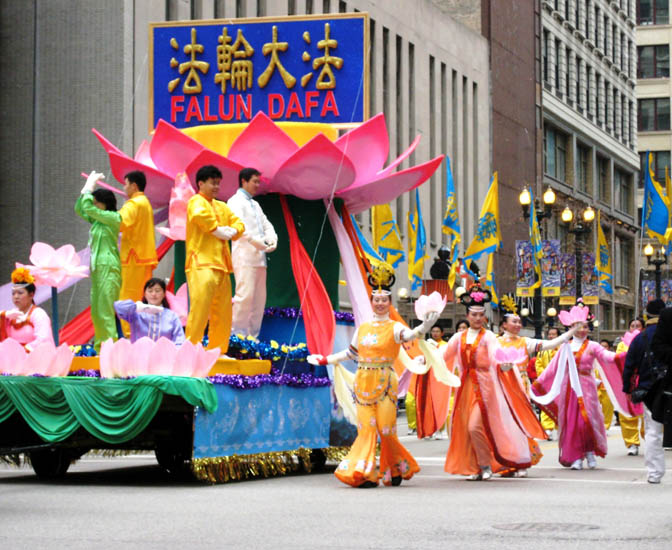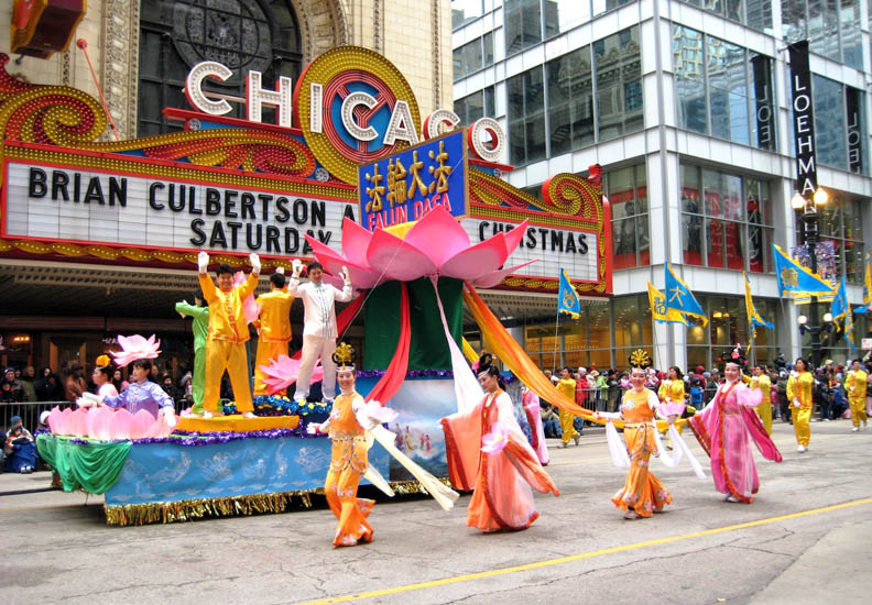 ![]() 法轮功学员的队伍经过著名的芝加哥歌剧院 |