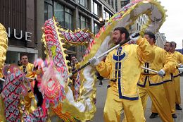 ![]() “映唐舞龙舞狮队”,参加者多数是爱好中国文化的西方法轮功学员 |