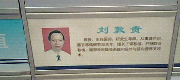 ![]() 武汉市同济医院器官移植门诊室(门诊室外标注是普通外科) |