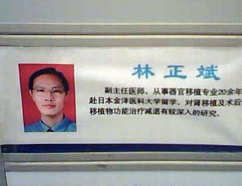武汉市同济医院器官移植有关人员:主任医师尤春景、主任医师刘敦贵、副主任医师明长生、副主任医师林正斌。