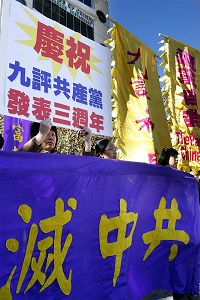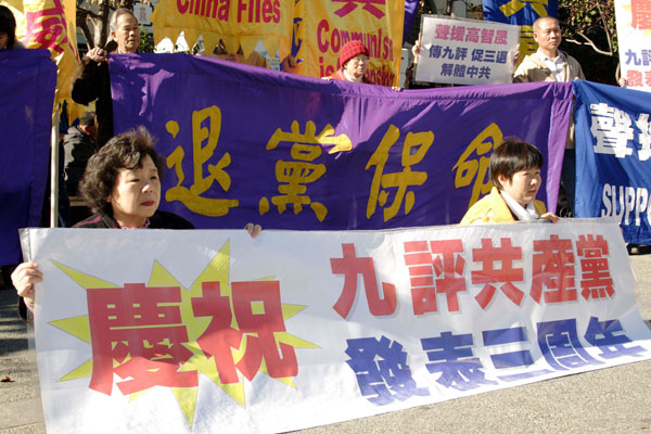 全球营救受迫害法轮功学员委员会代表占青表示,退!党!是顺天意而行;回顾《·九·评*》推出后的三年,人们慢慢分清了中国和中共不是一回事;退!党!速度越来越快,引起世界民众和政府的关注。