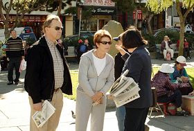 吴正雄(化名)是广东沿海地区的中国工程师。他与夫人一同来美旅游探亲,刚好路过花园角,被·九·评*集会所吸引,驻足观看。他说,已从网上下载《·九·评*共产党》来看,他并通过动态网看到大.纪.元;、明慧等很多在中国被封的网站。他认为,中共确实是西来幽灵,是中国人的祸害。当他听到退!党!的消息时,马上就声明了退出邪*党-。