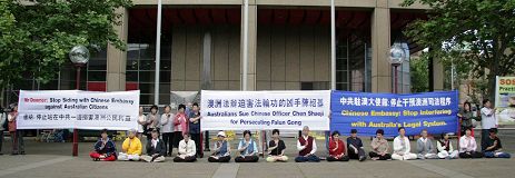 ![]() 悉尼法轮功学员在澳洲纽省高等法院前抗议中领馆干涉澳洲司法公正 |