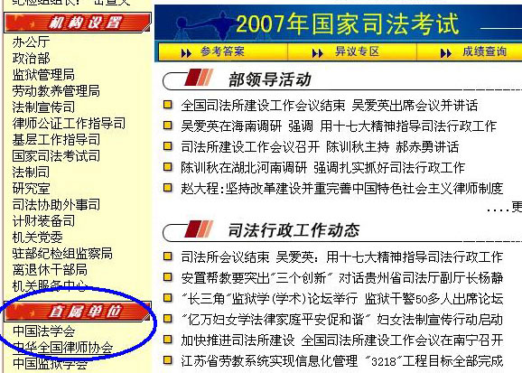 另据同中国司法部《普法网》使用同一政府级网站域名(www.legalinfo.gov.cn/gb/moj/zhishudanwei/lvshixiehui.htm)的中华全国律师协会网上刊登的《中华全国律师协会章程》第四条和第十七条分别显示,“律师协会接受司法行政部门的监督、指导。”“司法行政部门可以指派一名具有律师资格的律师工作管理人员作为候选人参加选举,担任律师协会的领导职务。”