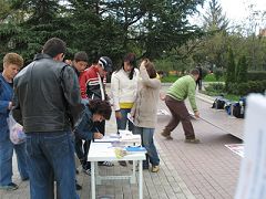 一名当地记者和一位年轻男孩整天都和学员们在一起,帮助发送传单并和路人交谈。这名就读于索非亚大学的男孩表示他想到炼功点上学炼功法,那位记者表示会将法轮大法的真相资料交给他的同事,而他本人则在卡赞勒克的互联网上发布相关讯息及照片。