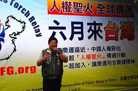 ![]() CIPFG成员、嘉义市议员蔡文旭,鼓励民众参加明年传至台湾的人权圣火路跑 |