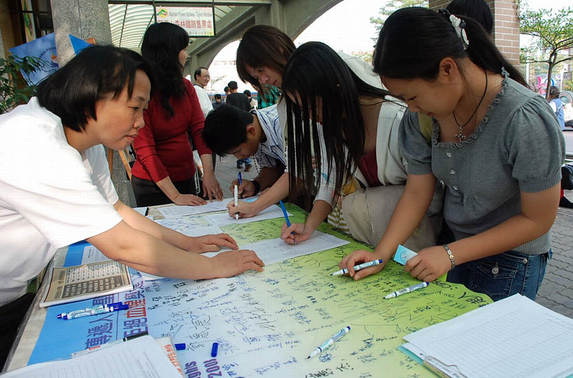 ![]() 签名支持人权圣火的民众络绎不绝 |