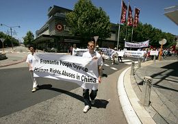 弗曼多市(City of Fremantle)是西澳对外海运的交通枢纽,历史悠久,风景秀丽,无论在任何时候,都吸引着众多的观光客。十二月八日星期六的中午,人权圣火在市中心点燃。庞大的游行队伍吸引了市中心人们的目光。