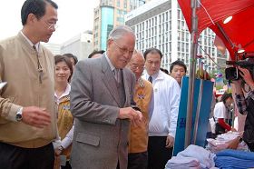 ![]() 前总统李登辉逐一拜访各个摊位 |