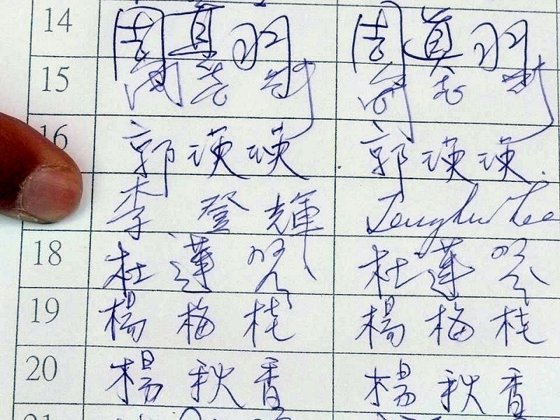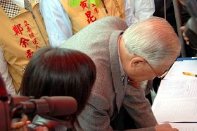 ![]() 前台湾总统李登辉在人权圣火的征签名单内签上中、英文姓名。 |