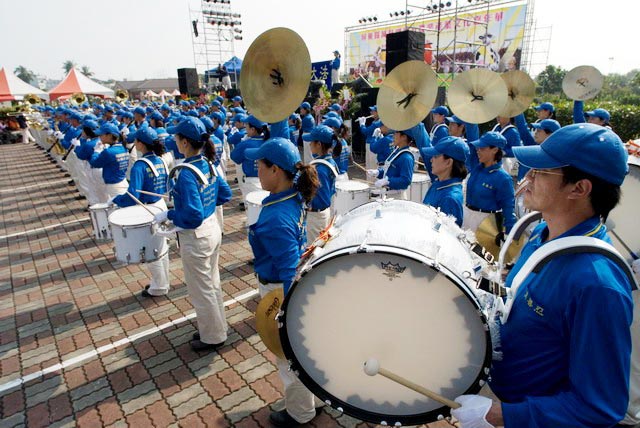 ![]() 天国乐团南部成员十五日在台湾屏东市区游行 |