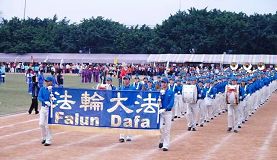 台北县永和市举办第二十九届市运暨社区全民运动会,吸引了八千多位民众参加,包括了一百多个民间社团、邻里社区和学校团体。大会特别邀请法轮大法天国乐团参加全民运动会表演。市民对于天国乐团整齐划一的演出表示印象深刻。