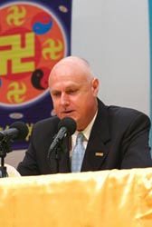 西人弟子John Deller 发言中谈到向内找。他从原纽省佛学会会长变为现悉尼佛学会成员,在修炼中如何认识到做事不是修炼,通过向内找挖出自己执著心的过程。他在发言中还提到,在向政府部门讲真相、向澳洲大选的议员和候选人讲真相、在旅游景点向可贵的中国人讲真相促三:退.的过程中,直面人心去执著,做事中不忘修心性的交流,让与会者深受启发。