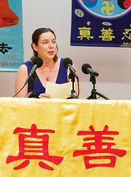做媒体市场营销的刘婕在法会上和大家分享了她们在寻找广告客户过程中与众生结缘、提高心性、让中国人了解真相三:退.的修炼过程。其间的酸甜苦辣,让大家更深的理解了“修炼路不同 都在大法中 万事无执著 脚下路自通”(《洪吟二》〈无阻〉)。在任何环境,助师正法的大法徒都能凭正念闯出一片天。