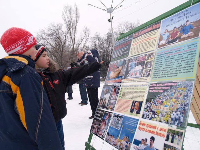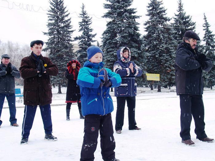 一位女运动员在回家的路上经过活动场地,学员优美、舒展的炼功动作深深的吸引了她,她赶快上前了解这是什么功法。学员向她介绍了这是来自中国的修炼大法——法轮功,她赞不绝口,表示出对功法的极大兴趣,她说:“我们城市要是有这样的功法就好了。”学员向她仔细的介绍了什么是法轮大法以及在中国法轮功学员无辜被迫害的情况。最后学员向她推荐了俄文版《转法轮》和教功带,她非常高兴的接受了。