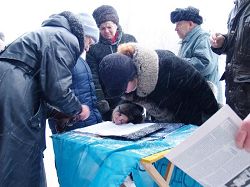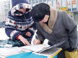 ![]() 人们冒着风雪,纷纷签名谴责中共的暴行 |