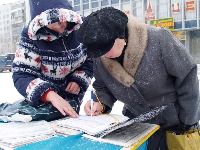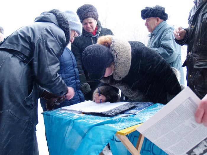 ![]() 在杰尔仁斯科市向人们传播法轮功真相 |