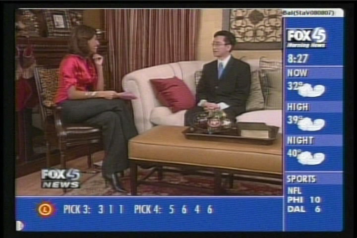 ![]() 福克斯电视台巴尔的摩分台于12月17日早间新闻节目中,特邀新!唐!人:电视台华府分台总经理向东先生,向当地观众现场介绍新!唐!人:圣诞晚会。 |