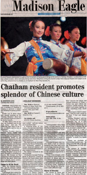 Madison Eagle, Florham Park Eagle, Chatham Courier 三家媒体十二月七日联手发表长篇文章并配以大幅往年神韵演出彩照,通过采访一名新!唐!人:晚会迷,生动的介绍了新!唐!人:晚会的独特性和无与伦比的演出。