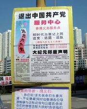 【明慧网二零零七年十二月十八日】自从大.纪.元;系列社论《·九·评*共产党》于三年前面世,并在中国国内引发退!党!潮后,海外多个地方都相继出现了退!党!服务中心,而香港是在中国管辖范围内唯一一个公开设有多个退!党!服务中心的地区,每天的自由行都令这些设在景点的退!党!服务中心热闹非常,而且由于香港是大量中国游客的第一线,从游客对法轮功、《·九·评*共产党》和退!党!态度的转变,反映出中国民众在过去三年确实经历着一场精神觉醒的运动,而且将继续发酵。