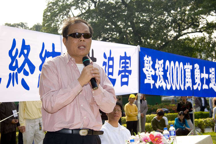 他对与会民众表示:「你们的热情和坚持,会是中国人民的一个希望,让他们知道在台湾有这么一群人支持他们,给他们希望。同时透过大.纪.元;的网站传到大陆去,让中国民众了解,在全世界有那么多的人在声援他们,希望他们可以反抗这个暴政,星星之火可以燎原。」