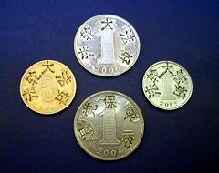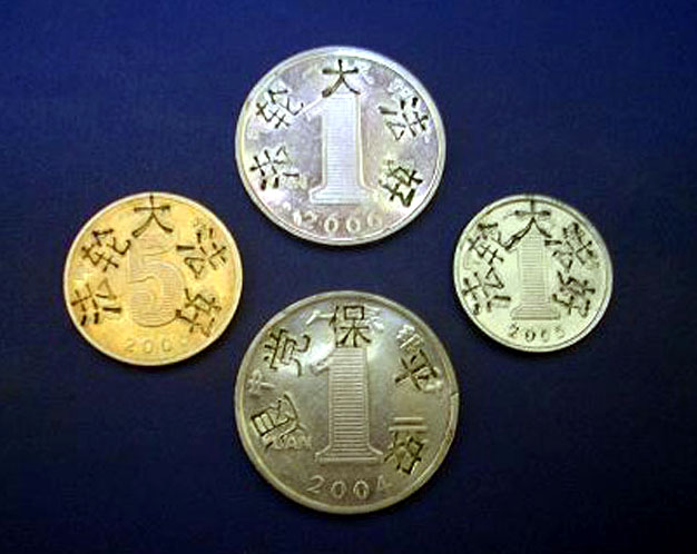 ![]() 流入社会,刻有「法轮大法好」和「退!党!保平安」的硬币 |