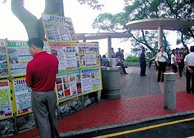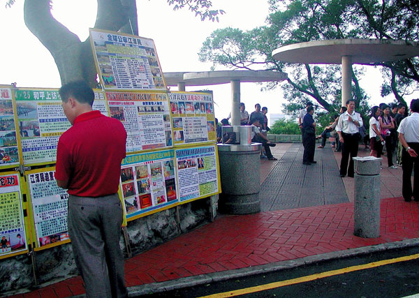 ![]() 中国游客在阅读有关迫害真相和退!党!的信息 |