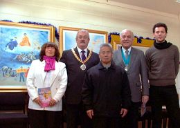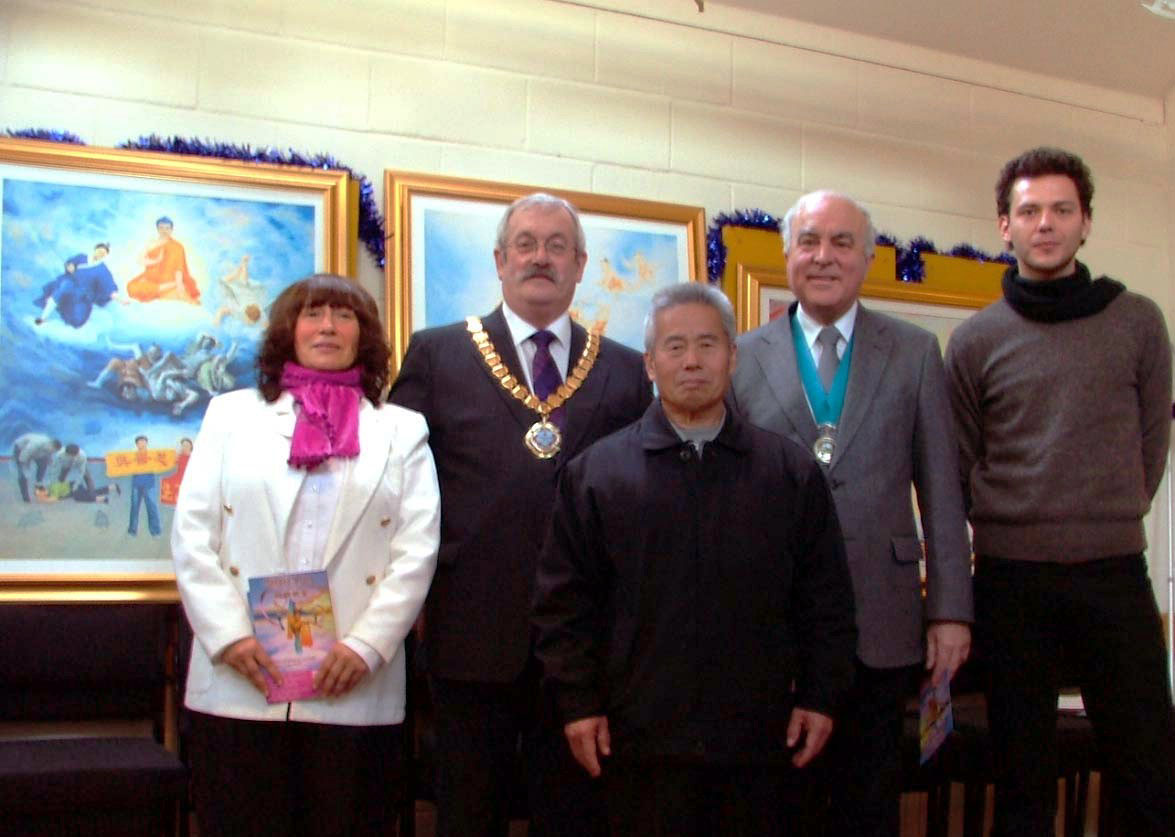 ![]() 剑桥郡东区政府主席弗雷德・布朗、副主席彼得・克瑞斯韦尔与画展组织者艾茹女士及法轮功学员于真善忍画展会场合影 |