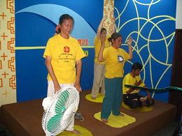 学员走在街上总会有行人追上前来询问法轮功的事,学员即将返回利马前,应邀去警察局向警官展示法轮功的五套功法,平和舒展的功法震撼着每个在座的警官的心。一阵热烈的掌声后,随之就是一片赞叹声。学员向警局的长官送去西文版大法真相CD碟和《·九·评*共产党》。