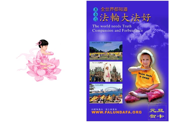 【明慧网二零零七年十二月二十二日】4页,打印注意事项:先打奇数页,再打偶数页。因为我们这买到的名片纸尺寸要比A4纸小一些,为了方便邮寄就做成了小贺卡,所以尺寸是145mm*195mm,如果纸张不同的话可以在页面设置里面重新设置一下纸张大小,再调一下图片即可。