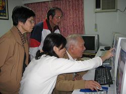 ![]() 八十二岁的郭伯伯学习电脑讲真相(中间头发花白者) |