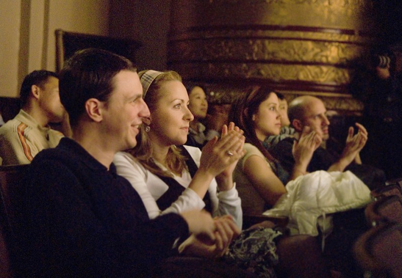 ![]() CNN的创办人之一泰德•凡诺(Ted Kavanau)(右)和友人一同观看演出。他说:“在我看来,这是第一流品质的演出,神韵纽约艺术团展示出的每个侧面都是令人炫目的精彩。每个部份都组织的井井有条,我没有预料到会看到这样的演出。” |